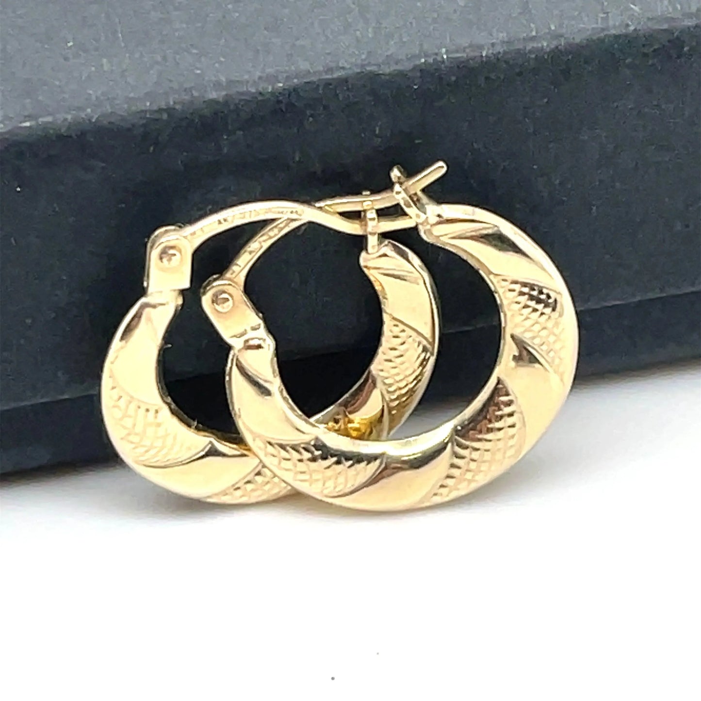 Step into timeless elegance with the 9ct Yellow Gold Victorian Creole Earrings. Inspired by classic Victorian jewelry, these elegant earrings offer subtle sophistication and vintage charm in a compact design. Their graceful silhouette adds beauty and meaning to any jewelry collection.