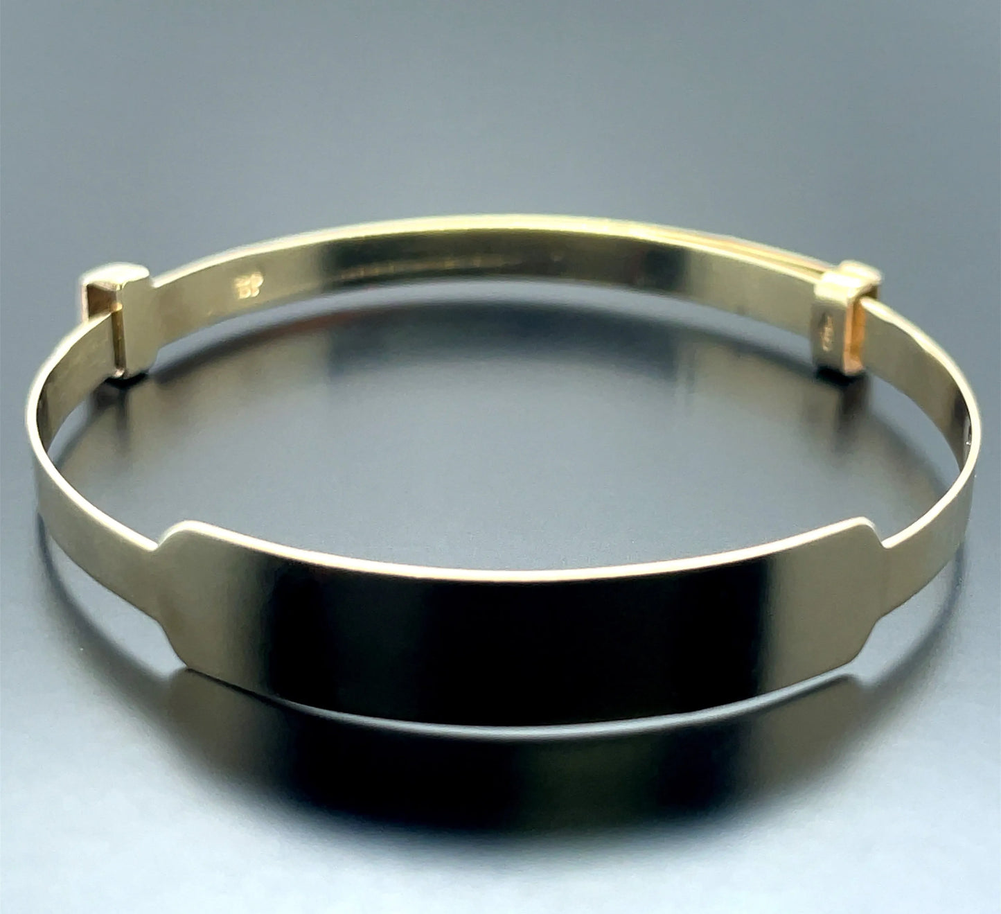 This baby ID bangle is crafted from solid 9ct yellow gold, not plated or filled.