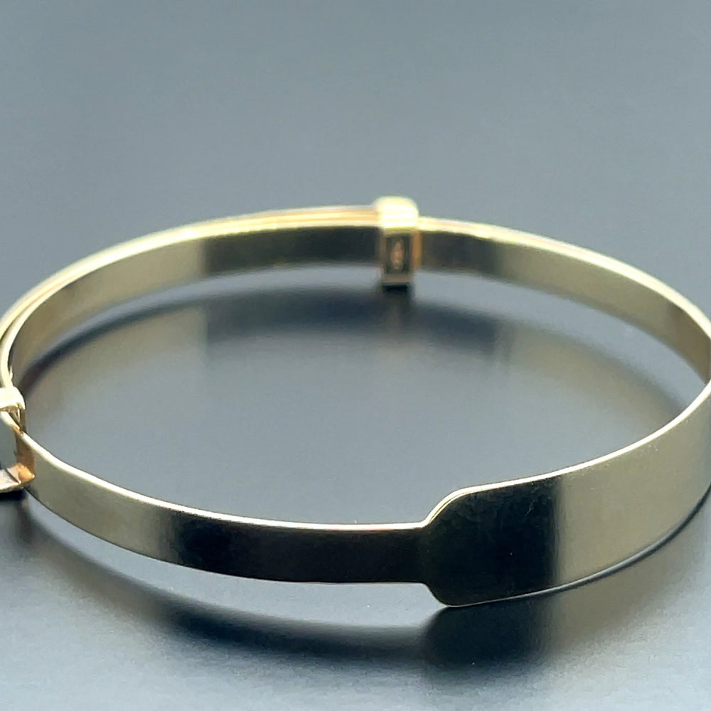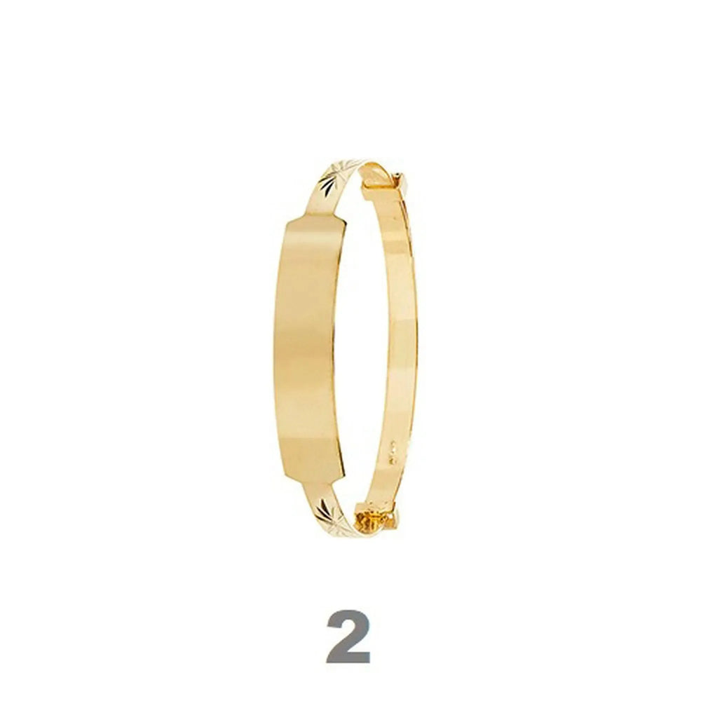 The 9ct Yellow Gold Personalized Baby ID Bangle is where elegance meets emotion.