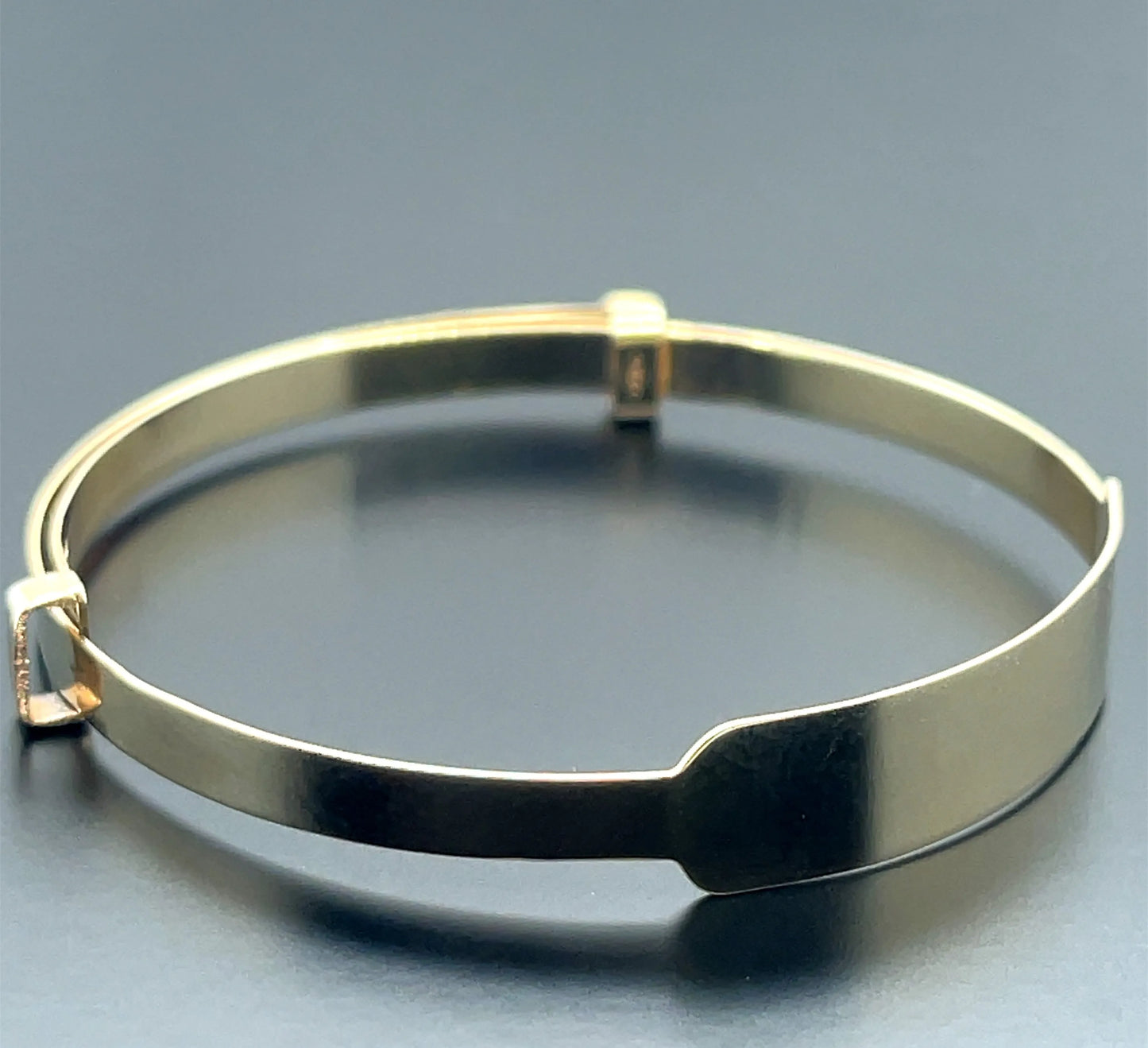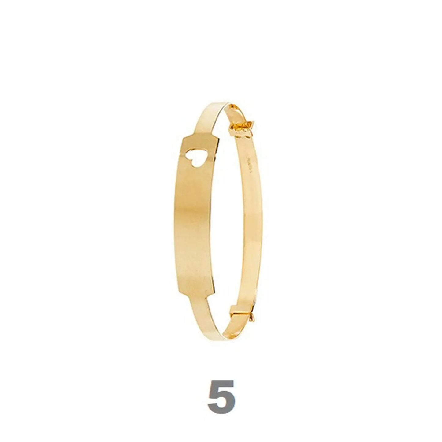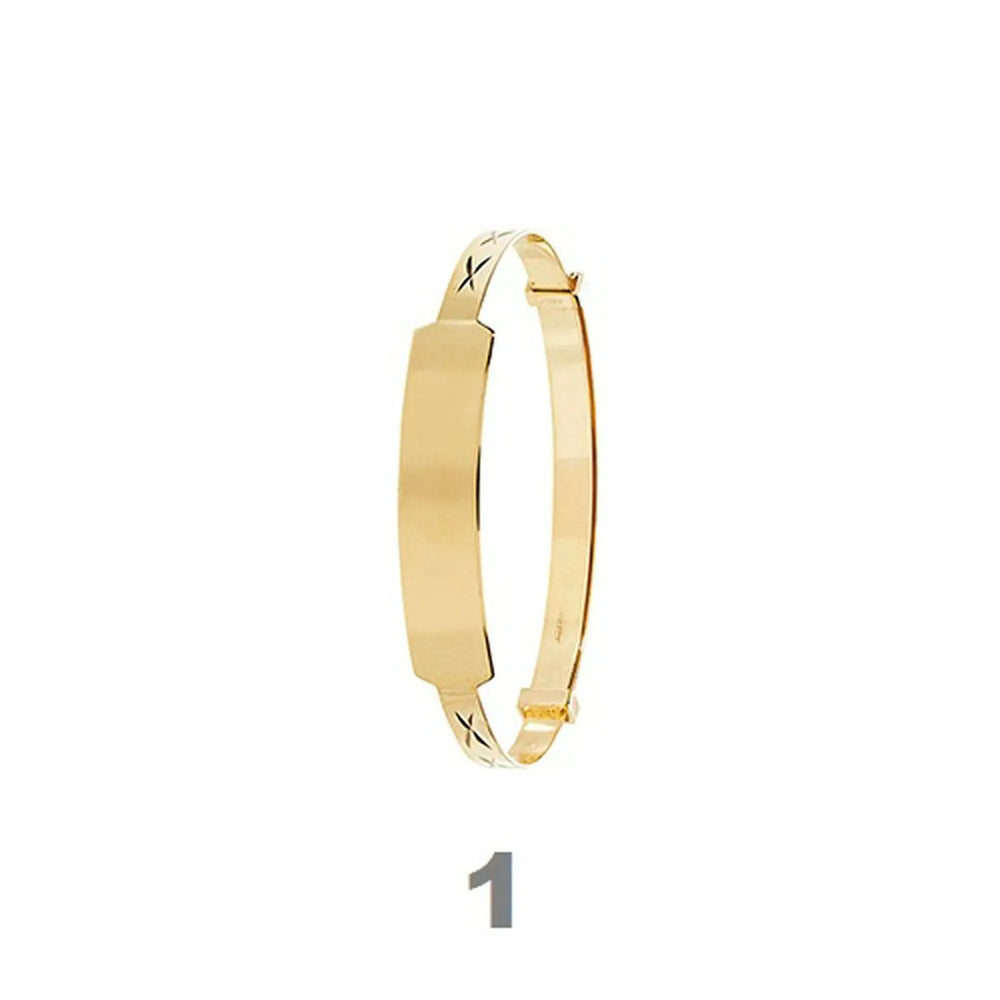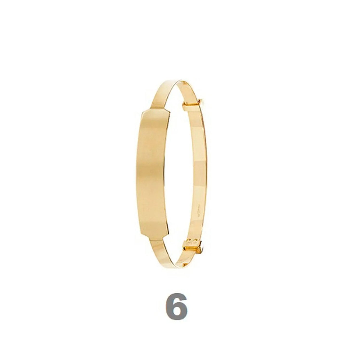 Celebrate your child’s milestones with this 9ct Yellow Gold Personalized Baby ID Bangle.