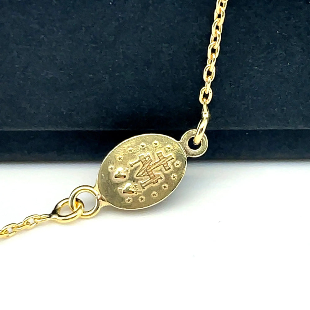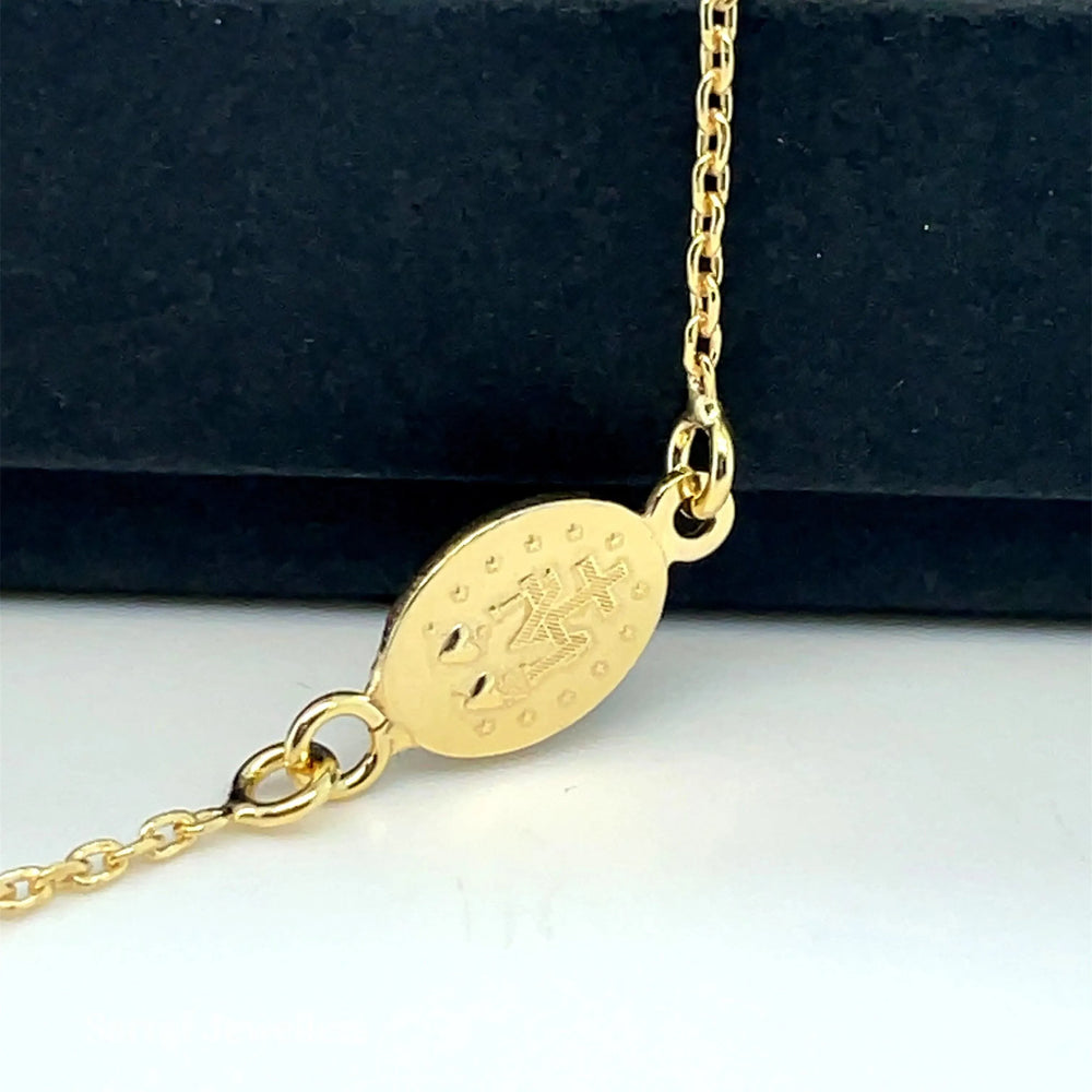 A finely crafted 5mm center pendant representing the Virgin Mary