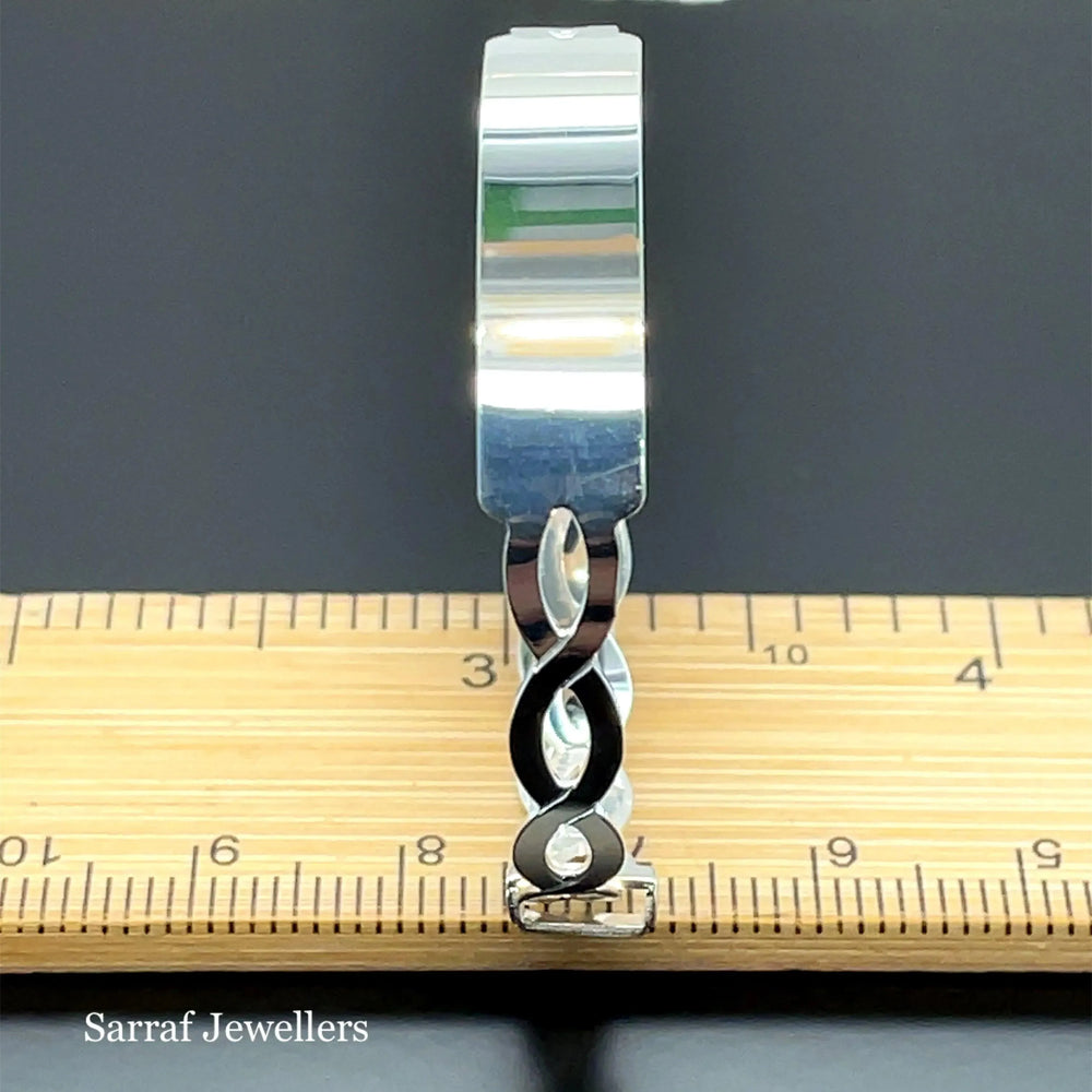 The Silver Baby Infinity ID Bangle is a graceful combination of symbolism, sophistication, and sentiment. Its timeless design, personalized engraving, and flexible fit make it a perfect piece for gifting, celebrating, and remembering.