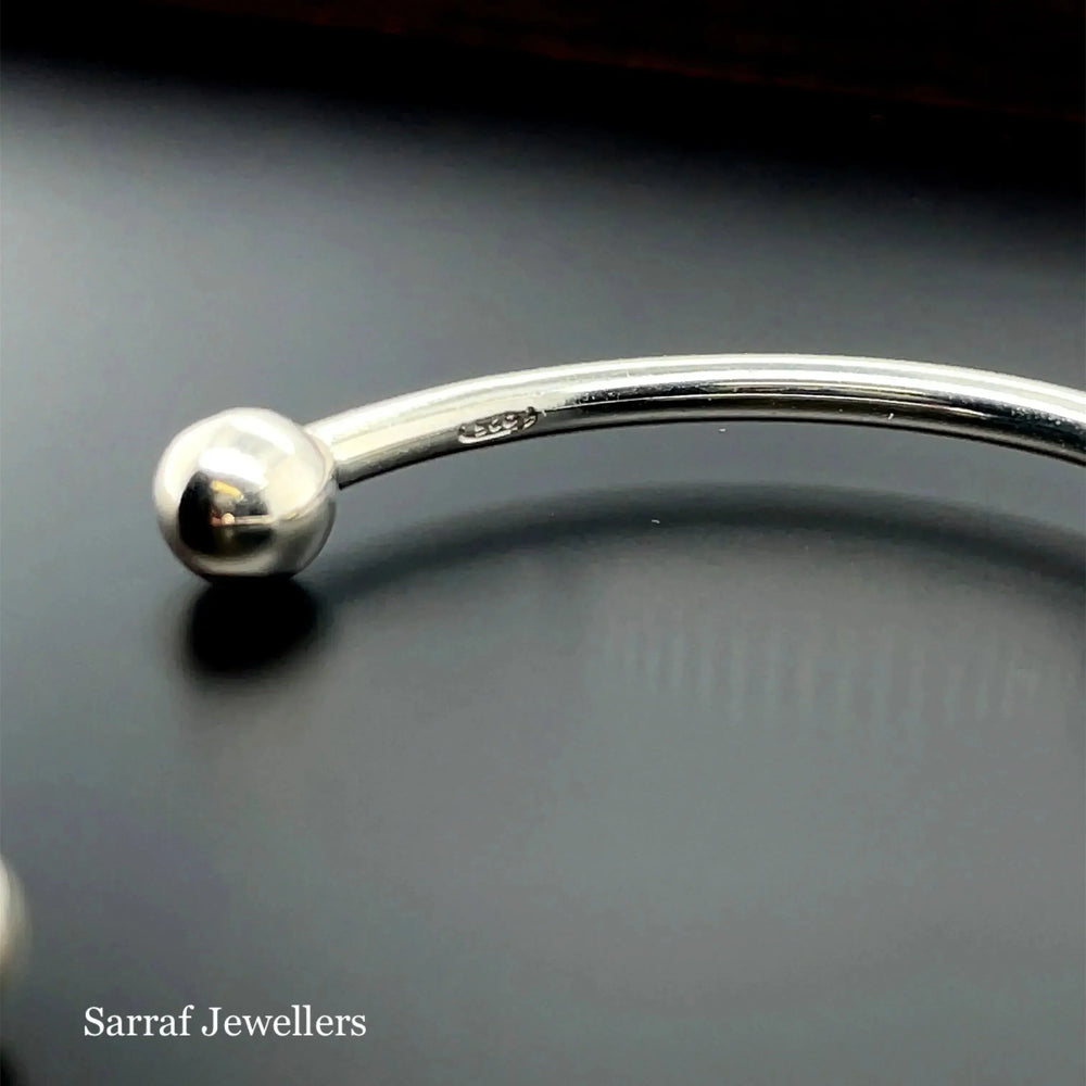 This bangle is made from solid sterling silver, known for its natural shine and strength. It offers a brilliant polished finish, making it perfect for formal occasions and daily wear. The metal is hypoallergenic, making it safe for babies with sensitive skin.