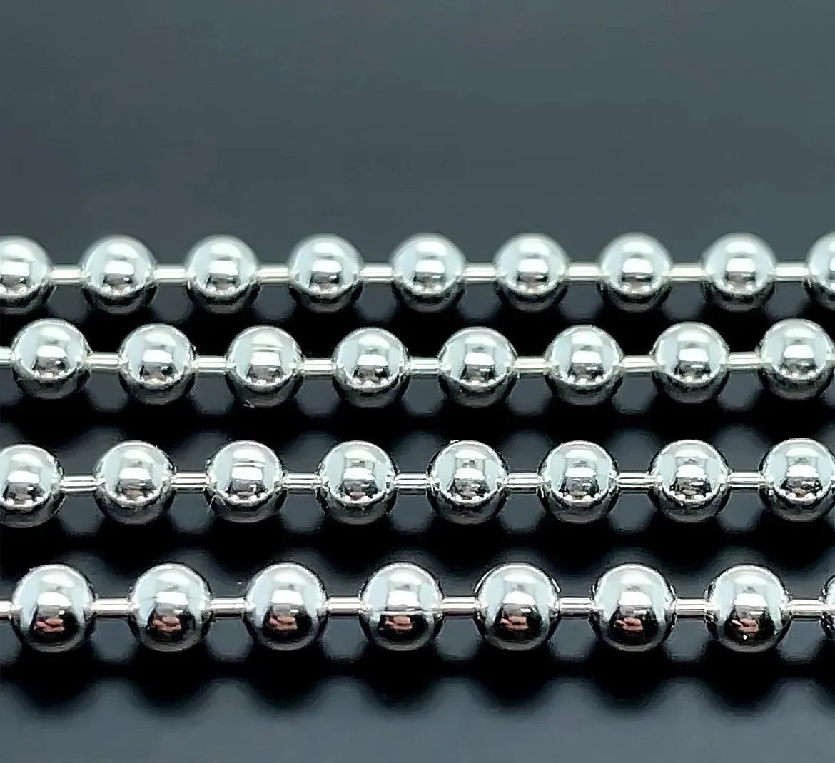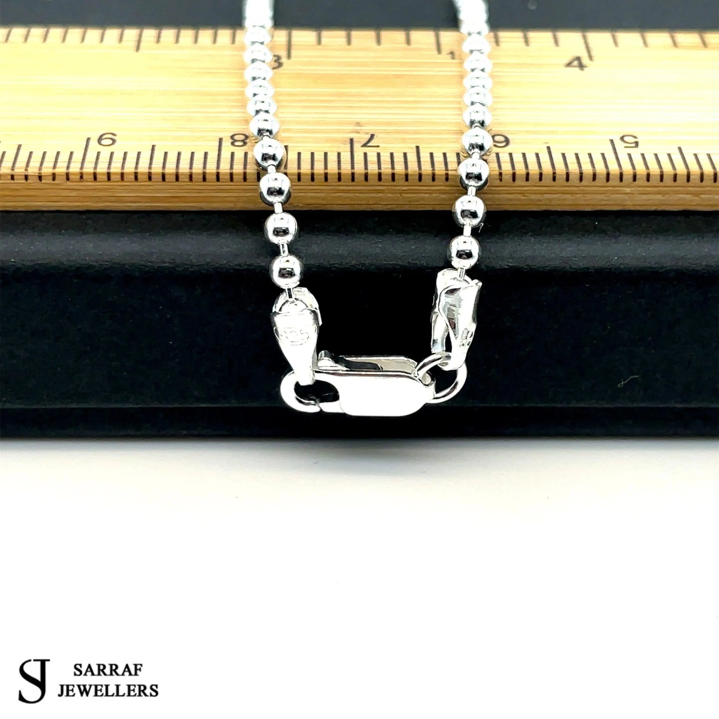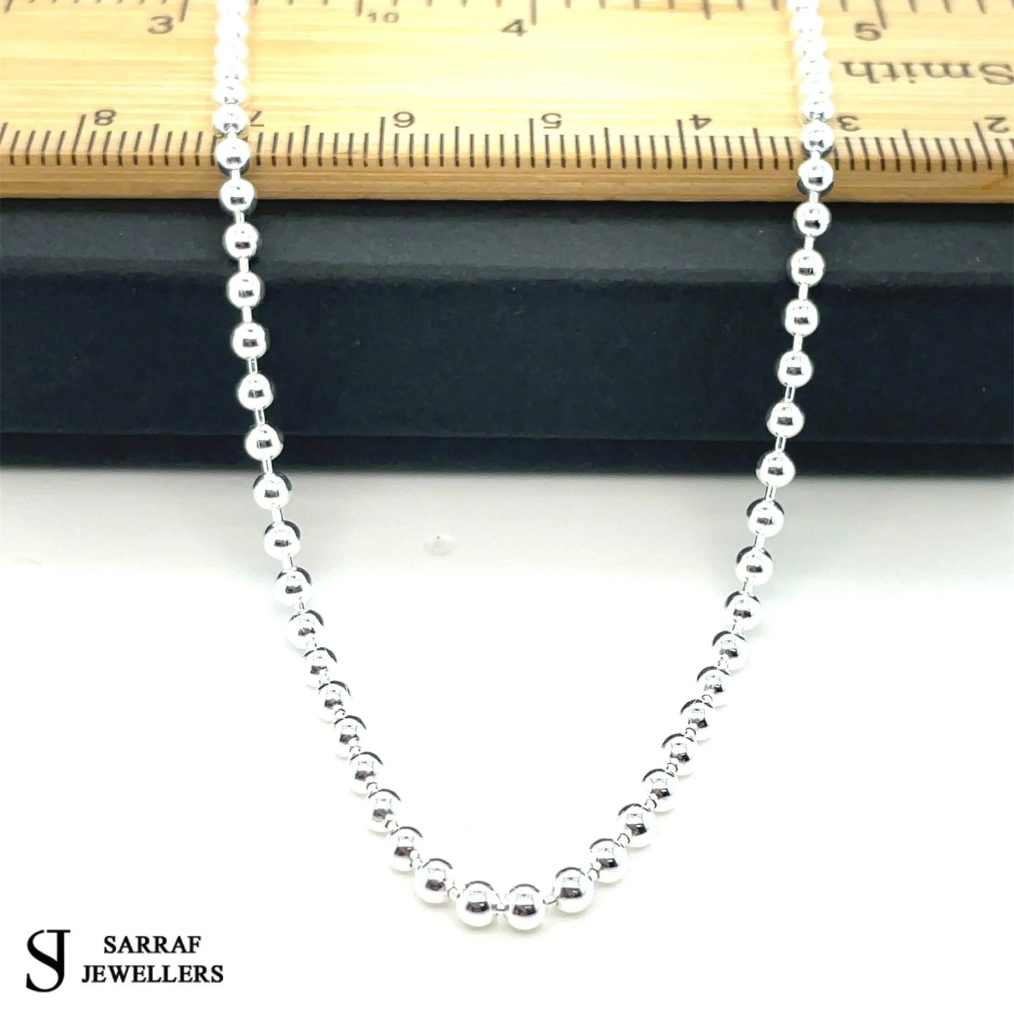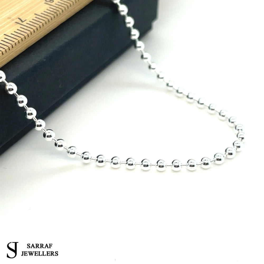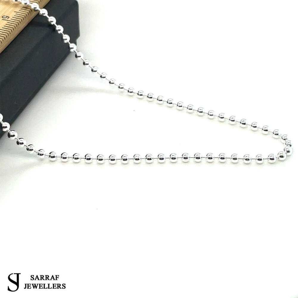 Silver Bead Chain Plain Design Necklace - 3mm | Shop Online Sarraf Jewellers UK