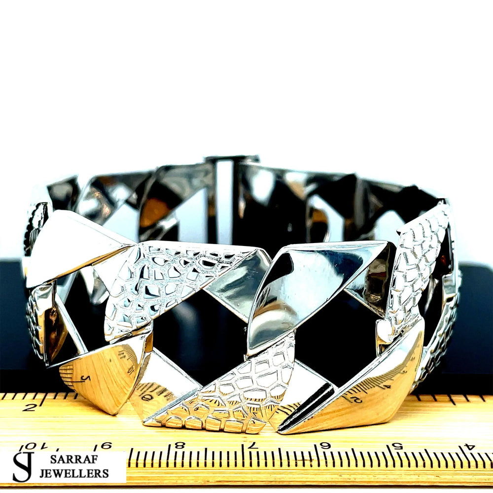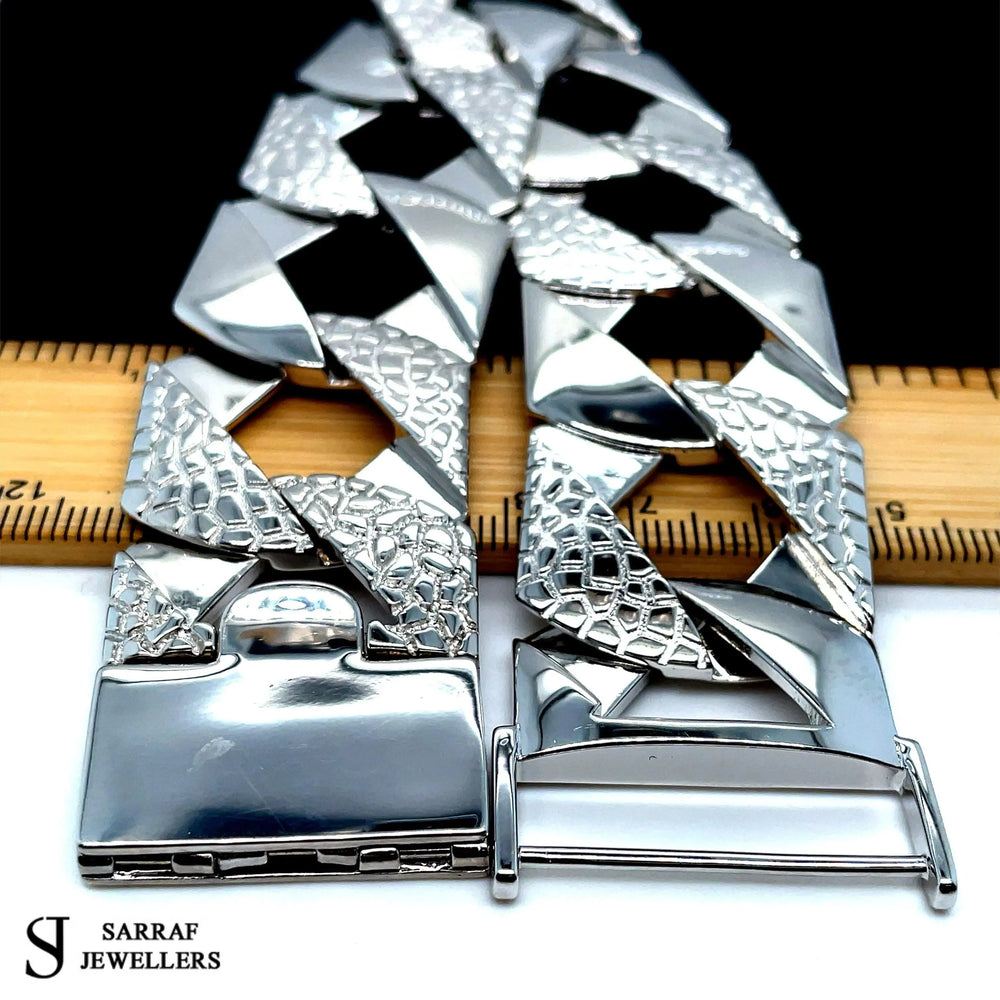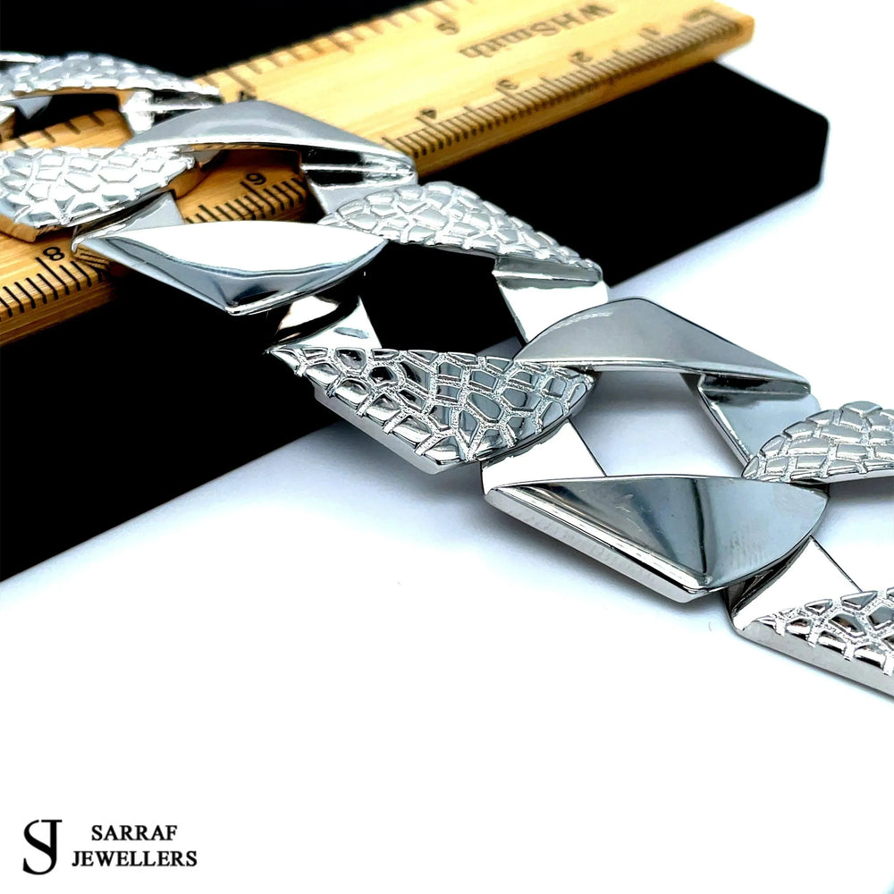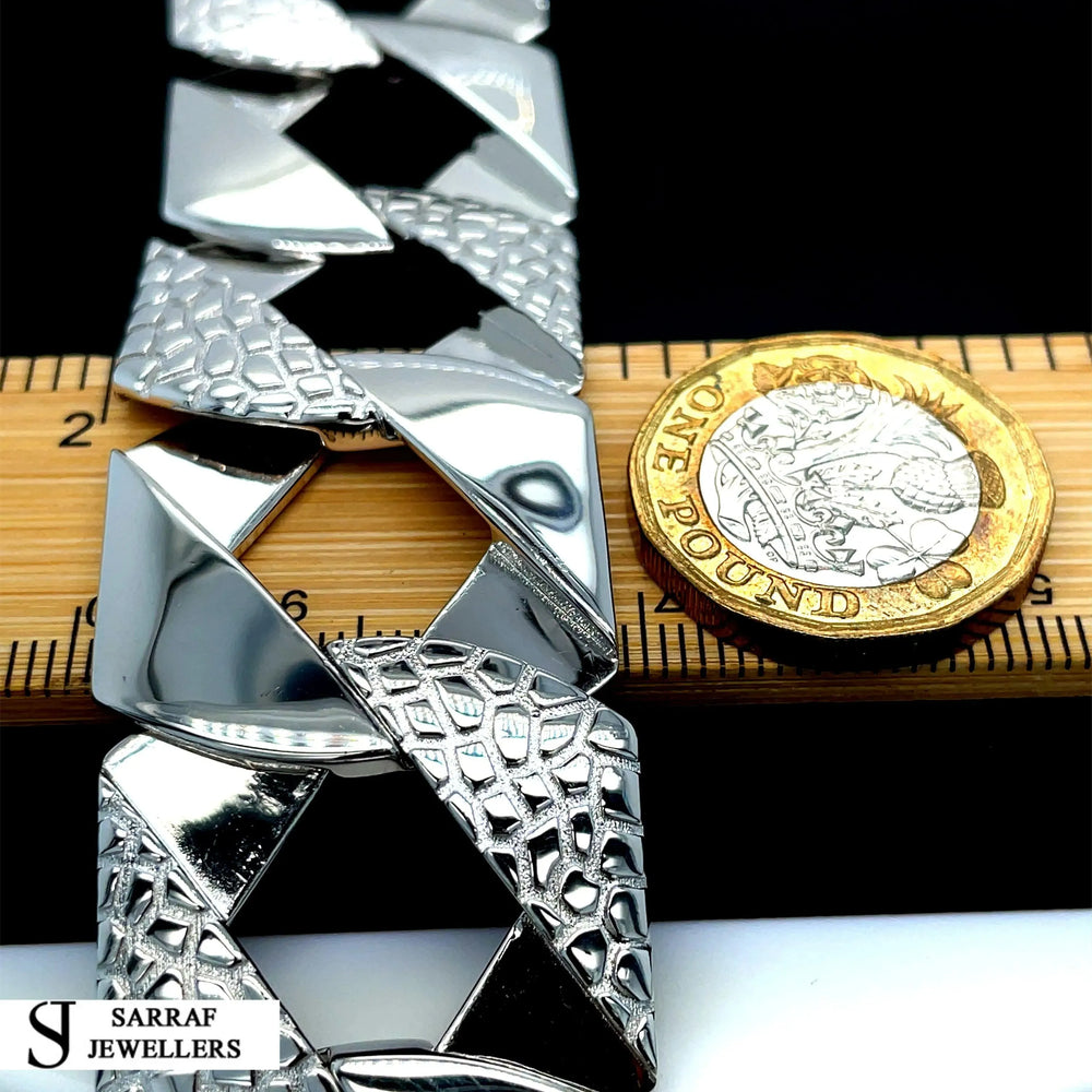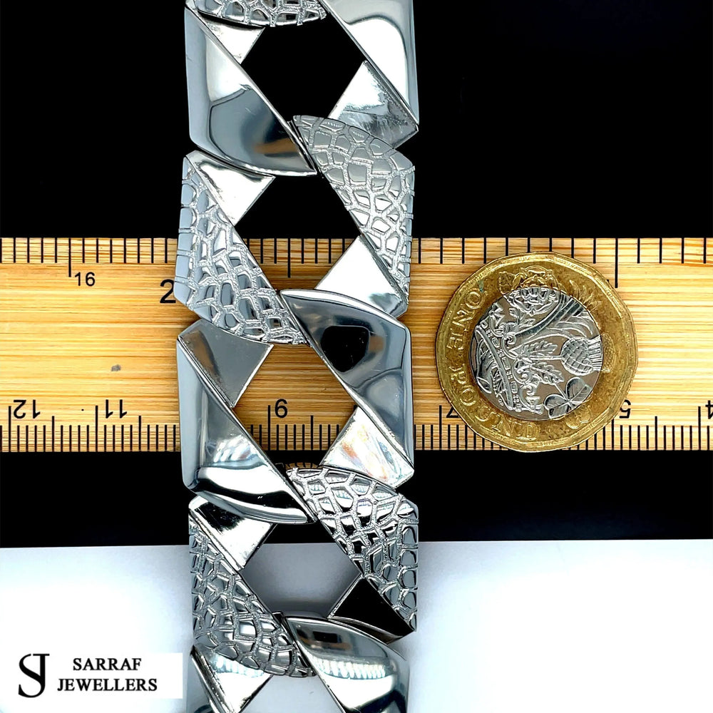 Elevate your jewelry collection with this London Links Bombe Chunky Cuban Bracelet in 925 Sterling Silver.